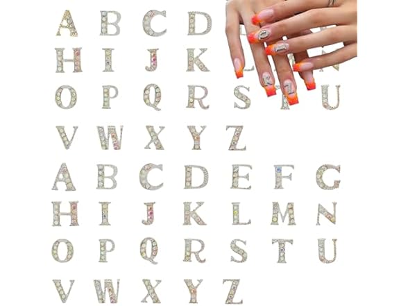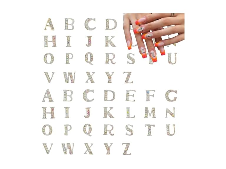 - (1) Pizadix 52 Pcs 3D Silver AB Nail Charms Letters Initial Charms for Nails Nail Letter Charms Alphabet Rhinestone Letter Nail Charms for Nail Art Design Decoration DIY Craft