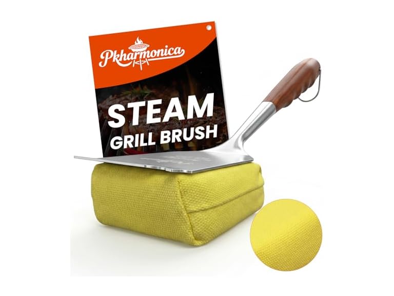 - 【Ultra-Safe & Efficient Steam Brush】The heat-resistant aramid fiber pad replaces dangerous wire bristles, so nothing breaks off into your food. Heat the grill to 400°F, scrape with the reinforced stainless steel blade, then glide the water-soaked sponge across the hot grates to generate sanitizing steam that liquefies grease in seconds and leaves no chemical residue behind. The grill brush head rinses clean in seconds, unlike bristle brushes that trap grease and broken wire fragments.
