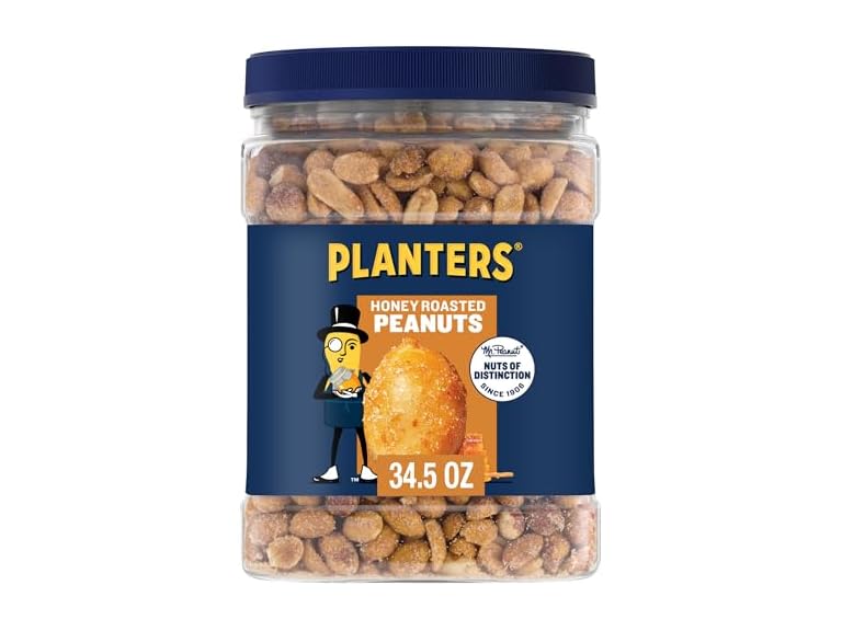 - (1) PLANTERS Honey Roasted Peanuts, Sweet and Salty Snacks, Plant-Based Protein 34.5oz (1 Jar)