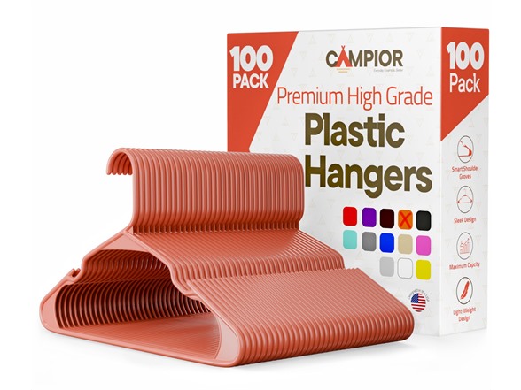 - Plastic Clothes Hangers – Heavy Duty Hanger Set, for Organizing Clothes, Dresses, and Coat, Holds Up to 5 lbs, Space-Saving Hangers with Non-Slip Shoulder Grooves, Pack of 100, Brown