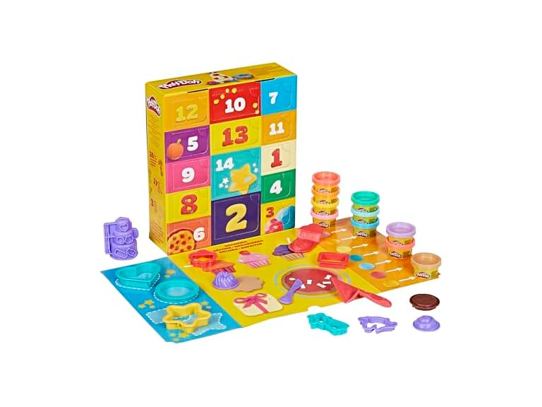 - (1) Play-Doh Advent Calendar for Kids 3+, 14 Days to Birthday, Vacation, Party, Back to School, & More, Surprise Arts & Crafts Activities, 26 Accessories & 17 Colors (Amazon Exclusive)