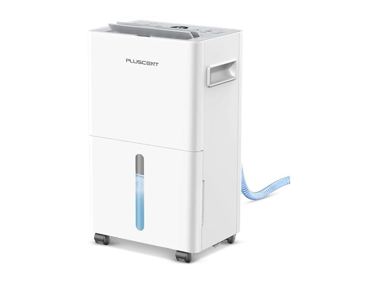 The PLUSCENT 21-Pint Dehumidifier is designed to deliver reliable humidity control for everyday living. Ideal for basements, bedrooms, bathrooms, apartments, and RVs, it helps manage excess moisture and improve indoor comfort in spaces up to 1,500 sq. ft.—a smart choice for homes in humid climates. Equipped with three smart operating modes, this dehumidifier adapts easily to different environments. DEHU Mode allows you to set your target humidity from 30% to 80%, automatically cycling on and off to maintain a comfortable moisture level while saving energy. DRY Mode helps speed up laundry drying on humid days by removing excess moisture from the air, making it ideal for laundry rooms and enclosed spaces. For areas with ongoing high humidity, CONT Mode provides continuous operation to manage higher moisture levels in basements, crawl spaces, and coastal homes. Advanced Support & Maintenance: How does the continuous drainage work? This unit supports continuous gravity drainage. By connecting the included 39.4-inch hose to the back outlet, moisture is directed downward to a floor drain using natural gravity. (Note: This model does not include an internal pump; the hose must be positioned downward for proper flow) . Is the filter easy to clean? To ensure peak performance, the unit features a washable and reusable filter. Simply rinse it under running water once every 2 weeks to remove accumulated dust and lint—no costly replacement filters required. Will it restart after a power outage? Yes, the Auto-Restart function saves your settings and resumes operation automatically once power is restored. Combined with the automatic shut-off sensor that prevents water tank overflow, it is perfect for unattended use in basements or seasonal homes. Compact, quiet, and easy to move, this dehumidifier fits naturally into any room. Operating at a whisper-quiet 36dB-40dB, With smooth-rolling wheels and a built-in handle, you can maintain a comfortable, dry environment wherever reliable humidity control is needed.