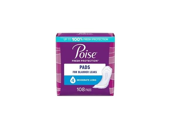(1) Poise Incontinence Pads for Women, 4 Drop, Moderate Absorbency, Long, 216Ct, White