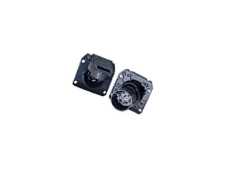 7-way flat pin socket used as original equipment on many GM, Ford and Nissan vehicles equipped with a factory 7-way connector. This trailer wiring connector is built to withstand the elements. It is constructed from durable black molded plastic to be impervious to rust, and it features a dust cap with a spring mechanism to keep out rain, salt, grime and dirt when the connector is not in use. Nylon housing Plugs into USCAR socket to provide 7-way RV blade trailer wiring connector Simple plug-and-play design eliminates the need for cutting or splicing 7-way connects tail, brake, reverse, turn signals, brakes and auxiliary power Spring-loaded dust cover keeps connector clean when not in use