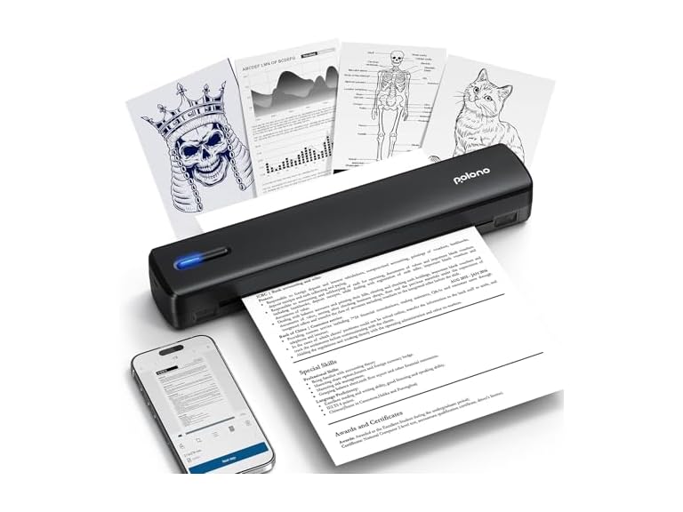 - Clear Printing--POLONO D810 Portable Inkless Printer delivers crisp, high-resolution prints with advanced inkless technology. This wireless printer operates for up to 49 minutes on a single charge, producing approximately 200 sheets