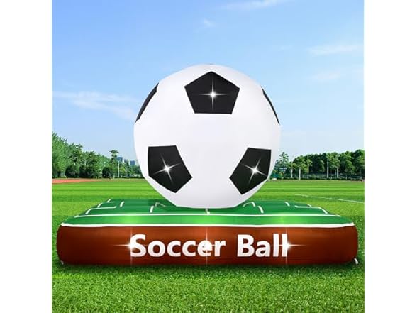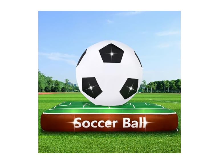 - Popblow 6Ft Tall 8Ft Long Giant Inflatable Soccer Ball Themed Party Decorations, Blow Up Soccer Balls Sports Birthday Activities Supplies with Built-in LED Light for Outdoor Yard