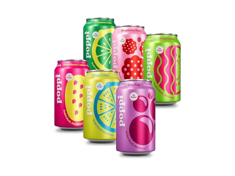 - Poppi Sparkling Prebiotic Soda Beverage with Apple Cider Vinegar, Seltzer Water and Fruit Juice, Party Starters Variety Pack, 12 Fl Oz, Pack of 12, Packaging May Vary