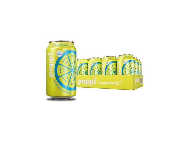 - (1)Poppi Sparkling Prebiotic Soda Beverage with Apple Cider Vinegar, Seltzer Water and Fruit Juice, Ginger Lime Flavor, 12 FL Oz, Pack of 12, Packaging May Vary