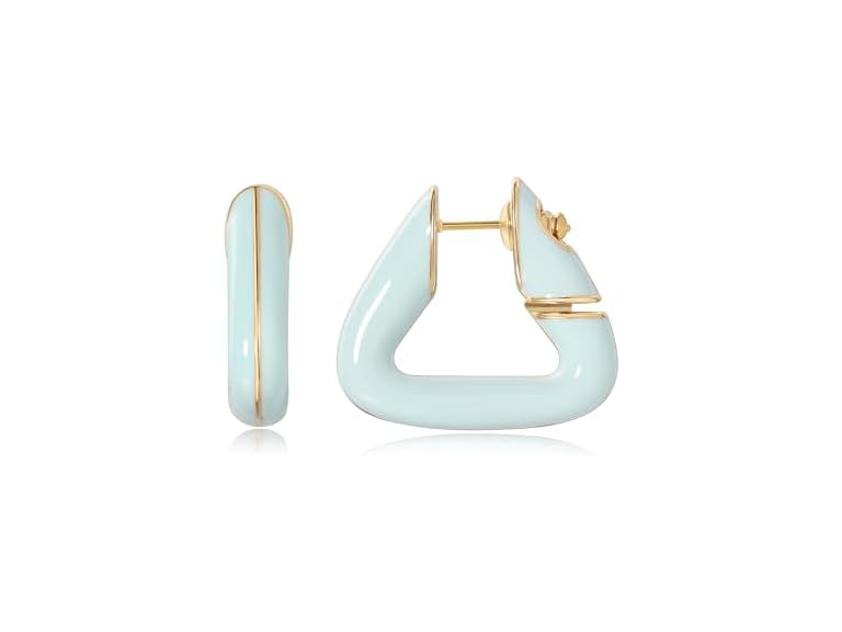 - (1) Triangle 14K Gold Plated 925 Sterling Silver Post Enamel Hoop Earrings | Lightweight Hypoallergic | (Light Blue)