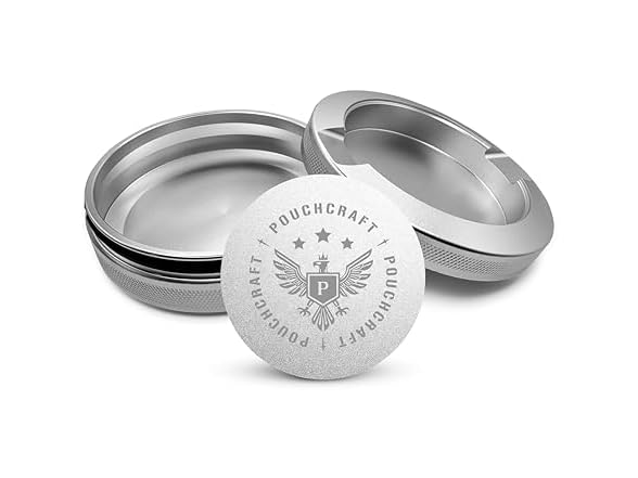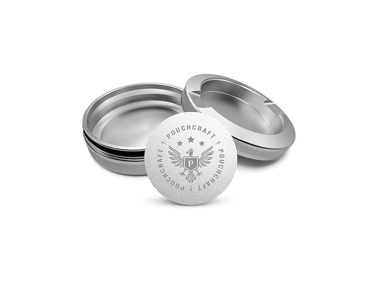 - (1) PouchCraft Metal Can | Metal Container for Pouches | Aluminum Used Pouch Storage Tin | Airtight O-Ring Moisture Odor Proof EDC Pocket Tin | Insignia Edition (Silver)