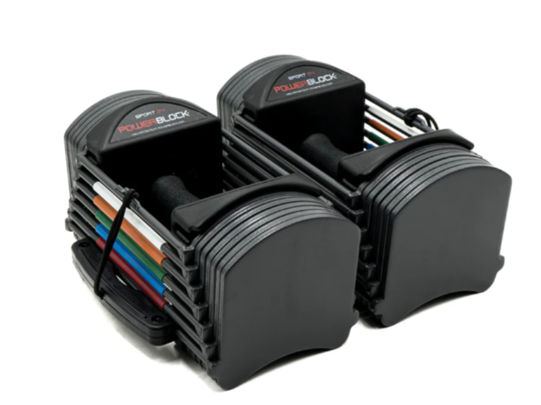 - The lightest and most compact of the dumbbells, the PowerBlock Sport 24 adjustable dumbbells offer 3 lb. weight increments, making it a perfect choice for anyone who does more reps with less weight or as a warm-up tool.