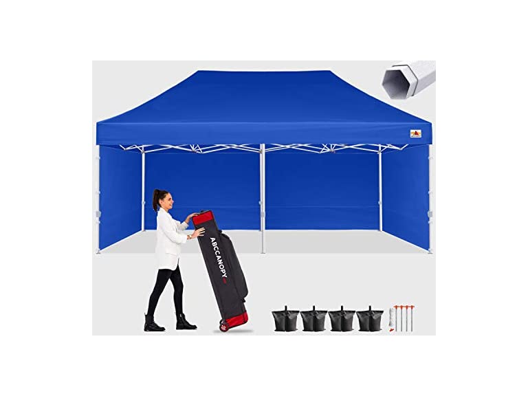 - [Special Designed Premium Grade Frame] Special thicken full steel structure, commercial grade 1.77'' (45 mm) hexagon shaped legs with powder coated finishing. Strong, Commercial and Rust Resistance. Build to withstand 50km/h of the strong wind. Your canopy will be the most durable and professional one in the market, definitely stand out from the crowd in Market stall/Market Trade Show.