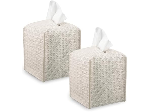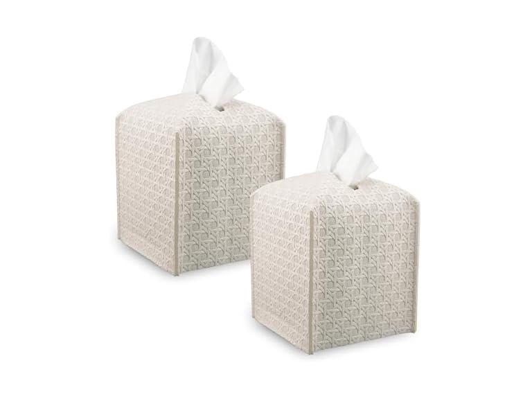 - (1) Connsole Casa Premium PU Leather Tissue Box HolderβModern Cover for Home, Office, CarβStylish Cube Organizer for Standard Kleenex Tissues βDurable, Easy Refill, Rattan Design (Beige 2 Pack)