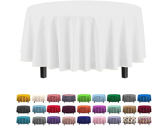 - (1) Exquisite Form Premium Round White table cover (84" Round)