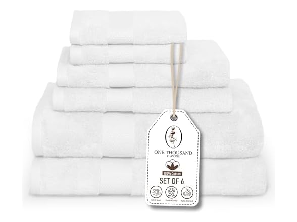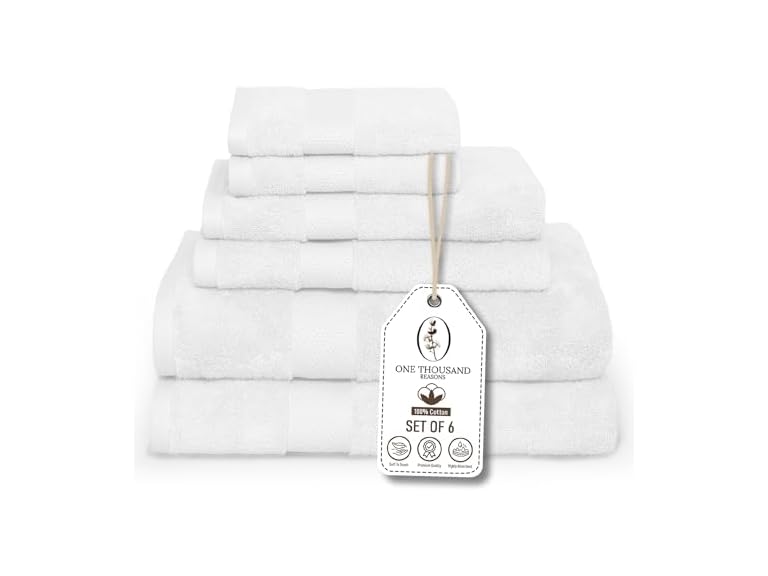 - (1) Premium Staple Cotton Bathroom Towel Set - White 600 GSM 6-Piece Luxury Bath Towel Set - 2 Bath Towels, 2 Hand Towels & 2 Washclothes Set - High Absorbent & Quick Dry for Gym, Spa, Hotel