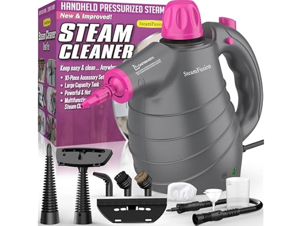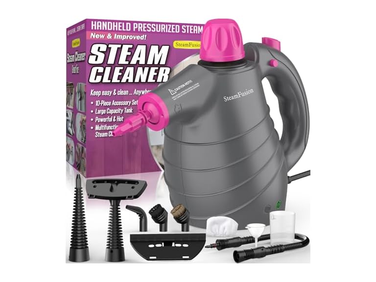 - POWERFUL SUPER HOT STEAM: Steamfusion handheld pressurized steam cleaner for home with 1050 watts power, fast heating in three minutes, and shot powerful pressurized 221°F hot steam for up to twelve minutes