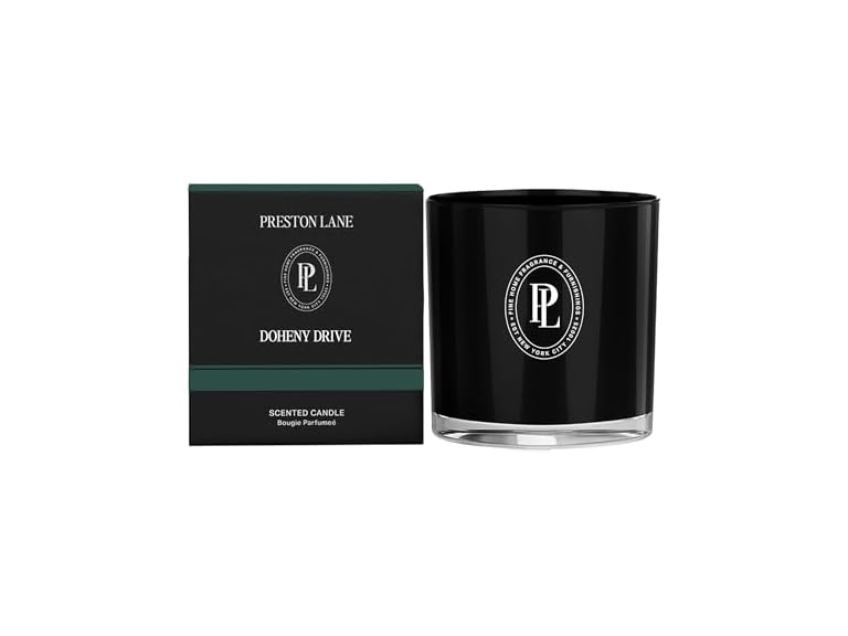 (1) Preston Lane Luxury 2-Wick Scented Candle, Doheny Drive, 7.5 oz Hand-Poured in USA | Long Burn Time (20-30 Hrs), Vegan Soy Wax Blend, Decorative Glass Vessel, Fine Italian Fragrance