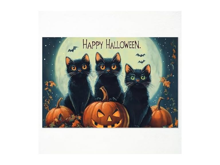 - Happy Halloween Witches Pumpkin and Black Cat Poster: With whimsical witches, pumpkins, and mischievous black cats, these posters bring a playful yet spooky vibe to your Halloween setup. Ideal for adding a dash of charm to your gothic decor