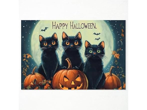 - (1) Generic Primitive Happy Halloween Canvas Wall Art, 3 Black Cats on Big Pumpkins Gothic Poster, Spooky Dark Night Moonlight Art Print, Vintage Creepy Pictures Oddit Art for Halloween Decor 12x16in Unframed