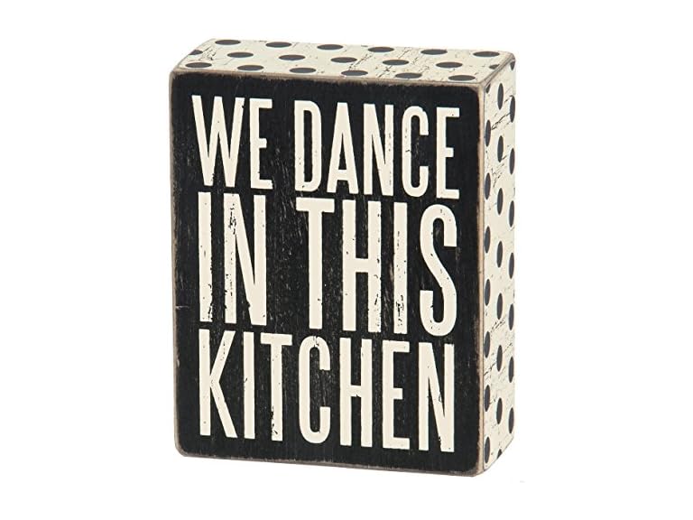 - (1) Primitives by Kathy 25192 Polka Dot Trimmed Box Sign, 4" x 5", In This Kitchen
