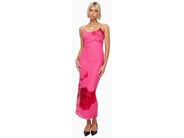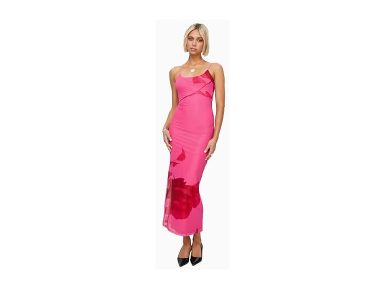 - (1) Princess Polly Knox Hot Pink Floral Mesh Low Back Maxi Dress
