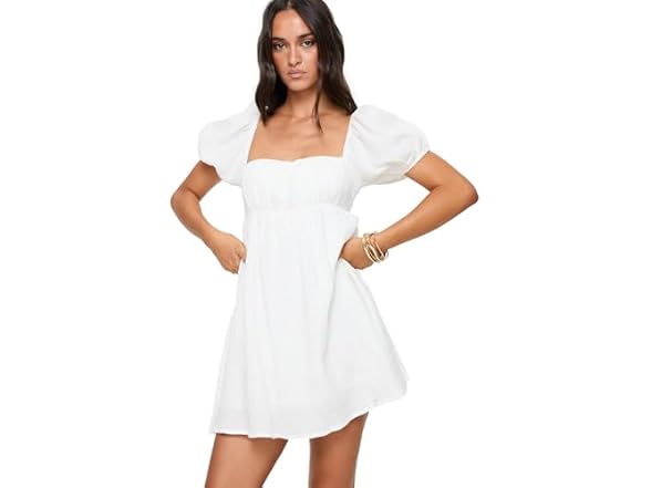 - (1) Princess Polly Let's Dance White Puff Sleeve Square Neck Mini Dress