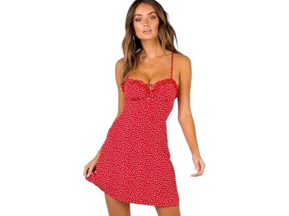 - (1) Princess Polly Love Birds Red Floral Ruffle Tie Bust Mini Dress