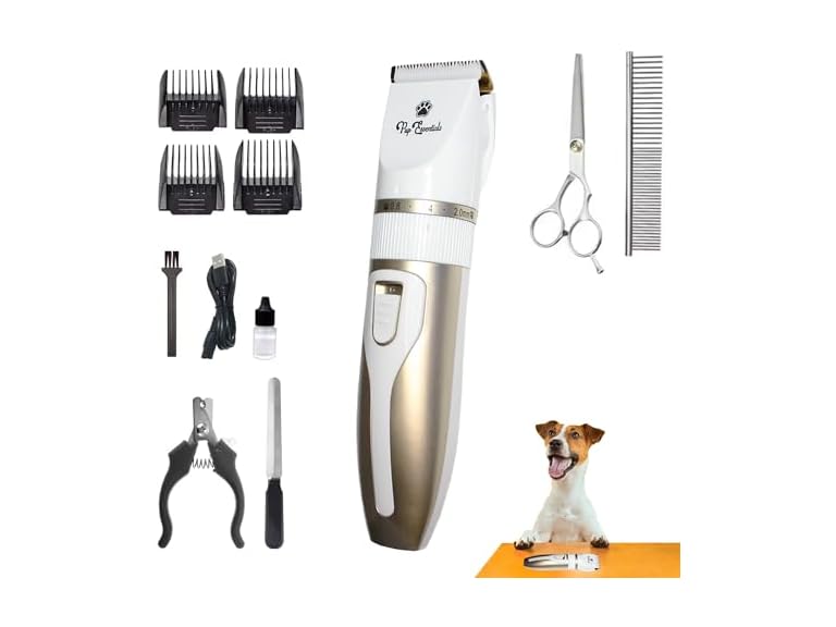 - 【Complete Grooming Kit】Includes everything you need to groom your pet from head to paws—trimmer with 4 guiding clippers, scissors, comb, nail clippers, and a nail filer. Perfect for a full grooming session!