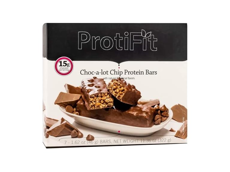- (1) PROTIFIT - Low Calorie Snack Bar for Healthy Diets, High Protein, 15g Protein, Low Carb, Low Sugar, Ideal Protein Compatible, 7 Servings Per Box (Choc-a-Lot Chip)