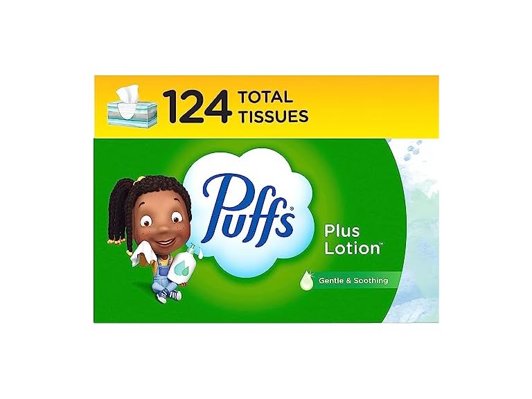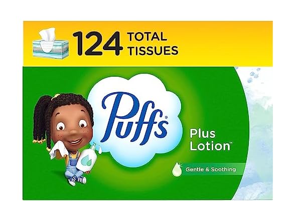 - Pack includes 1 Family Box (124 Tissues Per Box) of Puffs Plus Lotion Facial Tissues