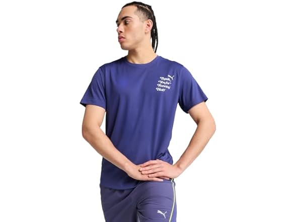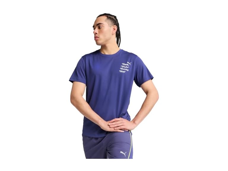 Elevate your run with the PUMA Men’s Running Graphic T-Shirt, featuring dynamic, runner-inspired graphics. Made from soft, breathable fabric, it combines comfort with fashion-forward design and proudly displays the iconic PUMA logo, symbolizing the brand’s rich heritage in athletic excellence and modern style.”