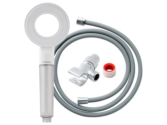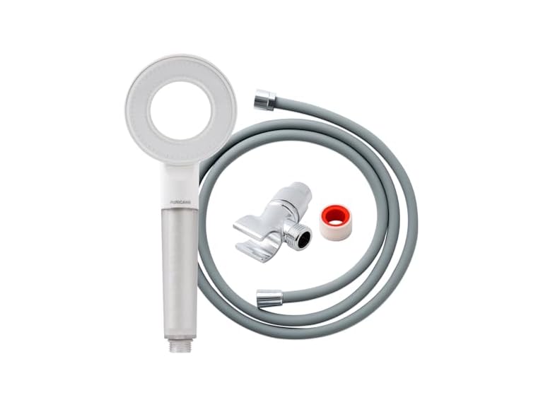 Enhance your shower with our unique donut-shaped shower head and 79-inch flexible hose set.