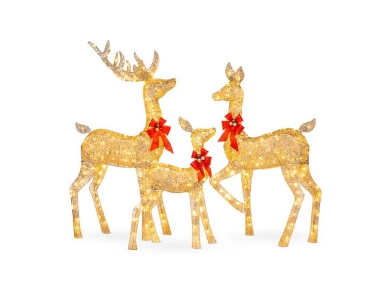 - DESIGN:There are two different types of Christmas decor light,2-PIECE SET Elk SLED: Light up your front yard and celebrate the winter months with a glowing reindeer pulling Santa's sleigh.3-PIECE LED ELK FAMILY SET: (60"" buck, 53"" doe, 36"" fawn) is a mesmerizing outdoor Christmas decoration that radiates festive charm. Each reindeer is adorned with delightful red bows, adding a touch of sophistication to your space.