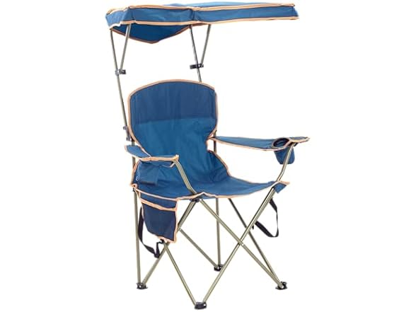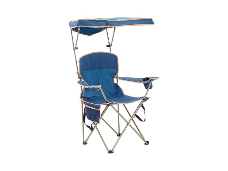 Relax and kick back while you shield yourself from the sun with the Quik Shade MAX Shade Folding Chair. Quik Shade's Max Shade Chair is compact, portable, and comfortable. Our patented Quik Shade shade chair is a great portable shade chair solution that offers reliable sun protection that's easy to transport. A rugged fabric carry bag is also included for convenient portability and storage. The patented design allows the sun shade to raise, lower, and tilt to block the sun from any angle, without leaving the comfort of your chair. With the new MAX Shade design, you get 40% more shade making this a great chair to take with you on your next outdoor adventure. The tough 600 x 300 denier polyester fabric is water, moisture, mold, mildew, and stain resistant, and can easily be wiped clean. The chair back has a higher arch and is also constructed from breathable mesh that lets air flow through to help keep you cool while you relax. With the convenient mesh storage pouch on the side, you can keep your snacks, cell phone, or accessories close at hand. Stay hydrated on those hot summer days outside with dual cup holders and lounge around in the superior comfort of the 22.5-inch, oversized seat that supports up to 500 pounds. SIZE: Open 22.8"L x 22.8"W x 51.6"H and seat is 18.5 inches from ground, and weighs only 9 pounds. INCLUDES: 1 folding camp chair and 1 carry bag
