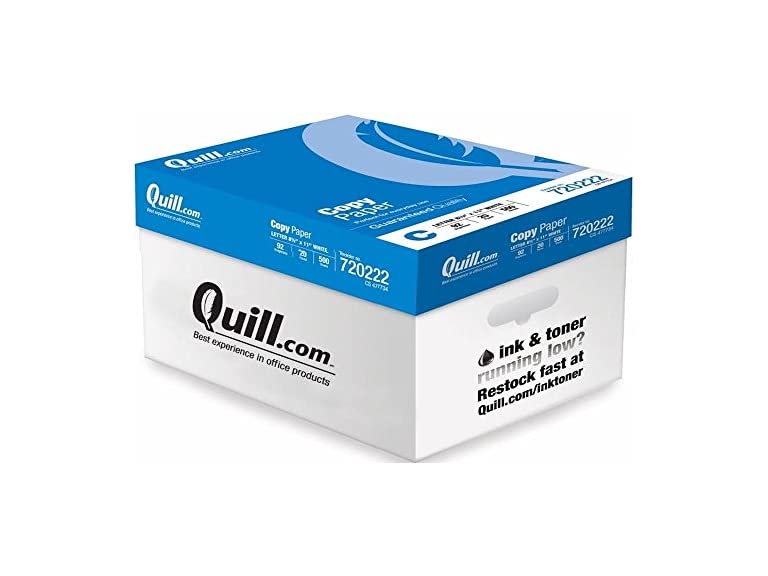 - (1) Quill Brand Multipurpose Copy Laser Inkjet Paper, 8 1/2 Inch x 11 Letter Size, 20 lb, 92 Bright White, Acid Free, 5000 Sheets/Case Carton (720222CT)