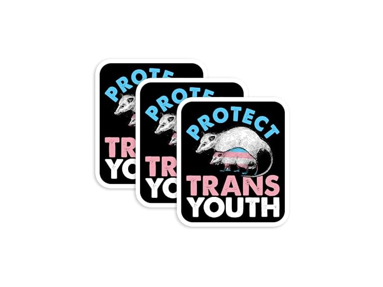 - (1) QUINNIAN Set 3Pcs Protect Trans Youth Sticker Funny Opossum Trans Rights LGBTQ Bi Pride Sticker Bookish Kindle Waterproof 3 Inches Die-Cut Vinyl for Water Bottle Laptop Phone for Friend Coworker Mom