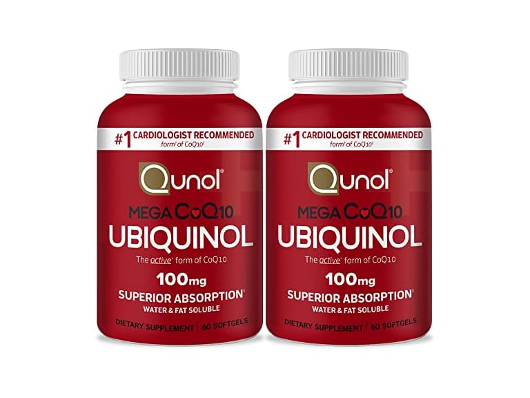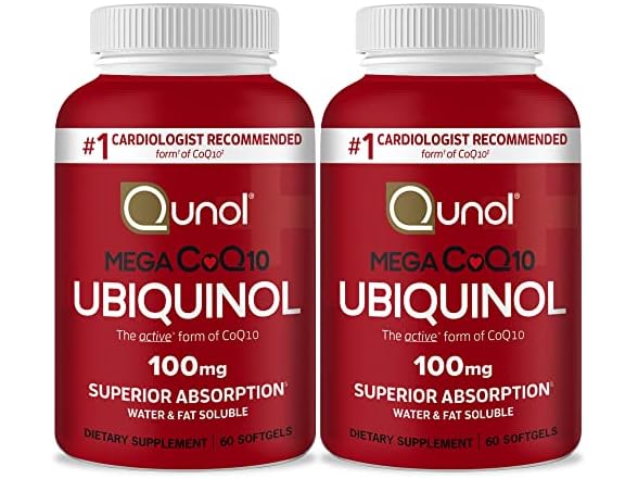 - (1) Qunol Mega Ubiquinol Coq10 100mg, Superior Absorption, Patented Water and Fat Soluble Natural Supplement Form of Coenzyme Q10, Antioxidant for Heart Health, 60 Softgels, Pack of 2