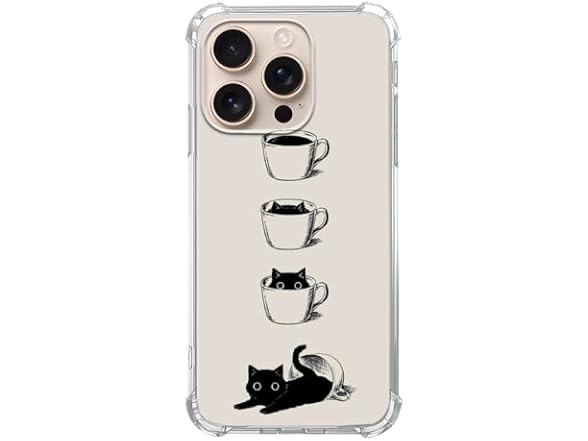- (1) Rambulgkt Cute Black Cats Case Compatible with iPhone 16 Pro, Cup Cats Case for iPhone 16 Pro, Cool Cute TPU Bumper Phone Case Cover
