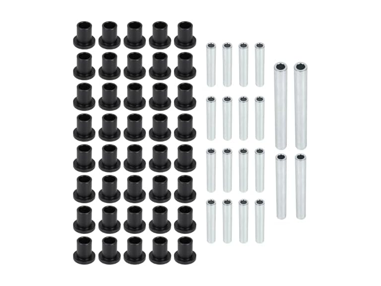 - Function: The control arm bushing kit suitable for front and rear A-arms, it can effectively cushion the suspension system of the vehicle, reduce noise and vibration, maintain a soft drive, reduce friction between the front and rear suspensions, and extend the service life