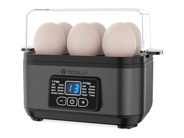 - 【Compact Family-Size Design】Measuring just 6.3×5.3×8.3 inches, this egg cooker's portable size fits perfectly in dorms, camping kits, and picnic baskets while serving family needs. Every household loves the versatile Tesslux egg cooker!