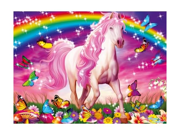 - UNIQUE DESIGN: Captivate young minds with the Ravensburger Horse Dreams jigsaw puzzle featuring a majestic horse with a pink mane under a glittering rainbow