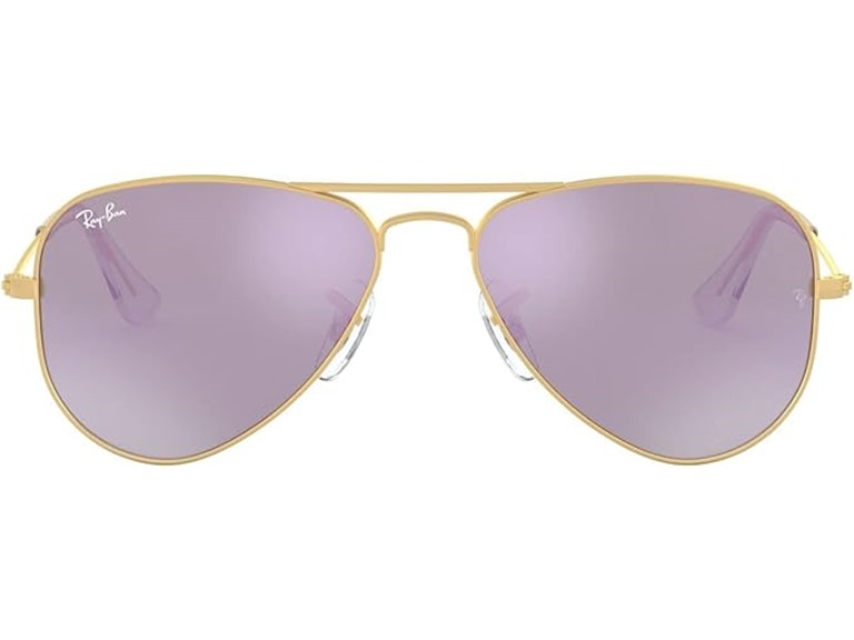 - (1) Ray-Ban RJ9506S 249/4V 50 50-13-120 Ray-Ban Junior Kids' Rj9506s Metal Aviator Sunglasses Matte Gold/Lilac Flash