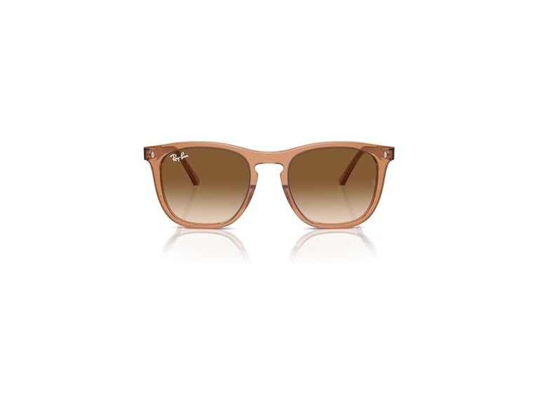 - FRAME FEATURES: RB2210F Low Bridge Fit sunglasses feature a square, transparent brown frame with a keyhole bridge, metal front rivets and clear/brown gradient lenses. Low Bridge Fit frames are designed for those with high cheekbones and lower nose bridges.