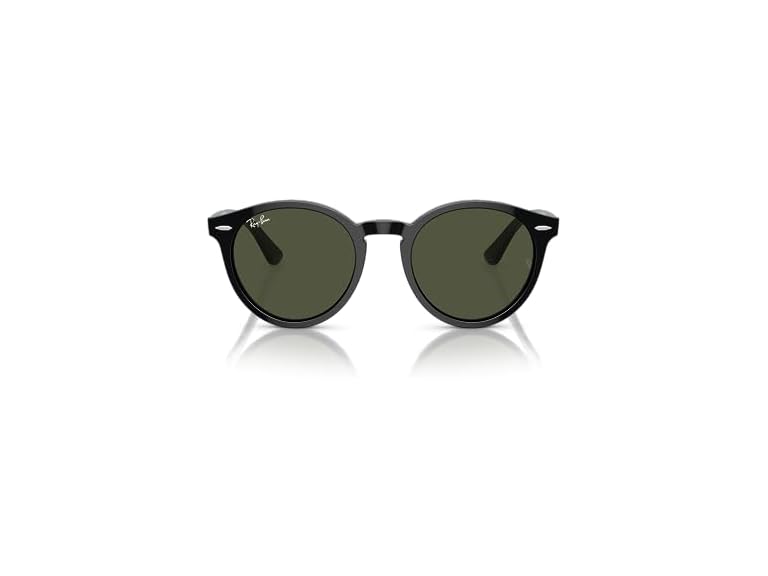 - FRAME FEATURES: RB7680S Larry sunglasses feature a round, black frame with metal front rivets, peaked temples, and green lenses.
