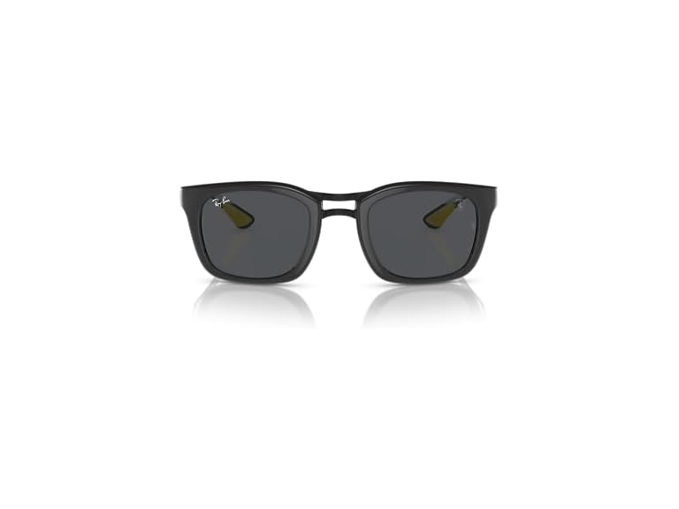 - FRAME FEATURES: RB8362M Scuderia Ferrari Collection sunglasses feature a carbon fiber square, grey frame with a cutout metal bridge and dark grey lenses.