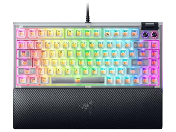 Razer BlackWidow V4 75% Mechanical Gaming Keyboard: Hot-Swappable Design - Compact & Durable - Orange Tactile Switches - Chroma RGB - MF Roller & Media Keys - Comfortable Wrist Rest - Phantom White