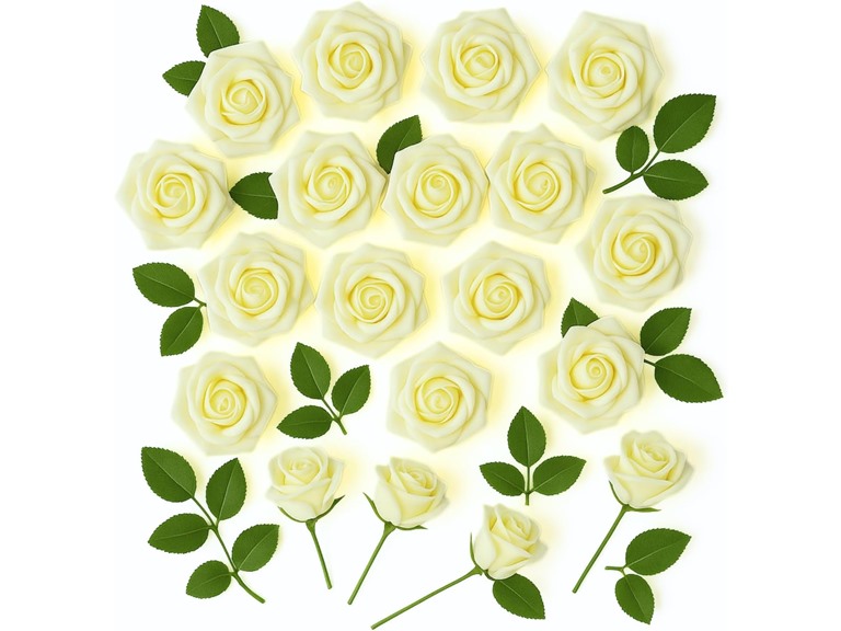 - (1) RCZ Décor Artificial Foam Roses with Stems & Leaves - Pack of 50 - Cream