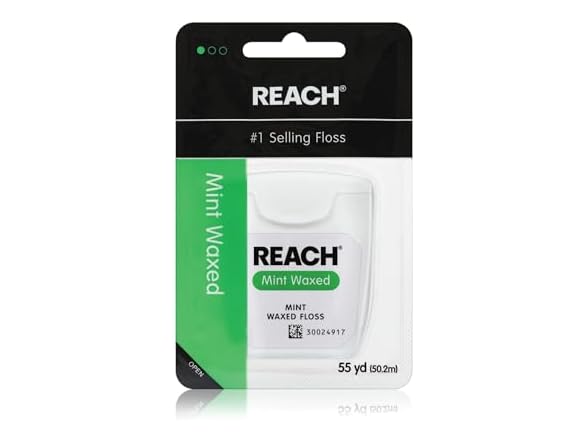 - (1) REACH Waxed Dental Floss, Mint, Plaque Remover for Teeth, Shred Resistant, Floss Slides Smoothly, Easy to Use, Waxed, Deep Cleaning Teeth, Oral Care, PFAS Free, for Adults & Kids, 1 Pack, 55 yd