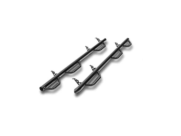 - EASY ACCESS | With a patented drop down hoop step at each door with metal, dimpled step plates, Nerf Steps allow for easy access to your stock or lifted truck and deliver reliable traction and stability in any weather condition.