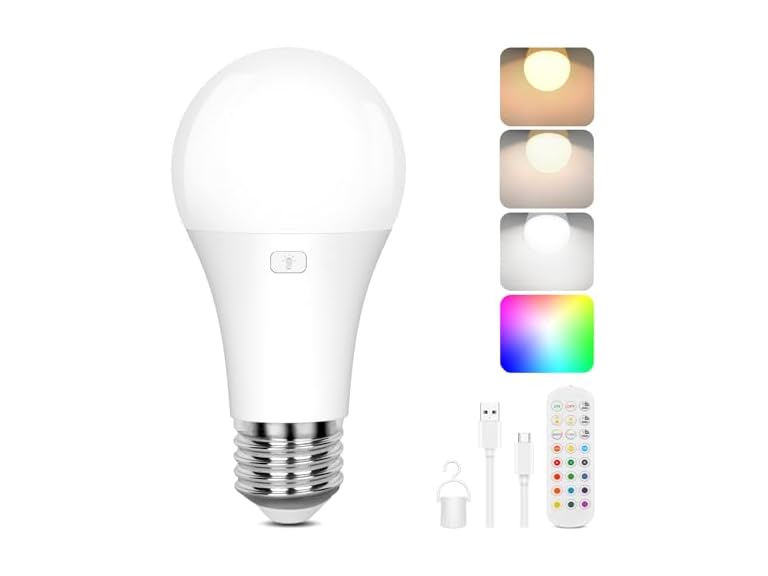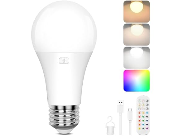 - 15 Colors in 1: Differ from normal rechargeable bulbs with only three adjustable color temperatures, these rechargeable light bulbs equip with 3CCT+12 RGB in 1. No need to buy more bulbs for different light effects, they can cover all your lighting needs in one convenient package, ideal for indoor use